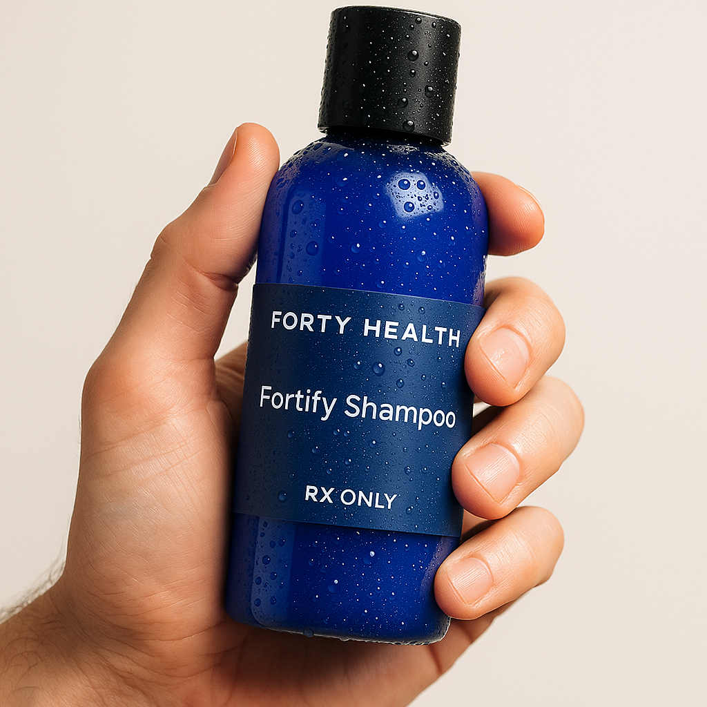Fortify RX is a compounded prescription shampoo formulated for hair loss. This formulation is prepared by a licensed compounding pharmacy for individual patients and is available by prescription only. You will consult with a Forty Health clinical provider to determine if this personalized treatment is right for you.